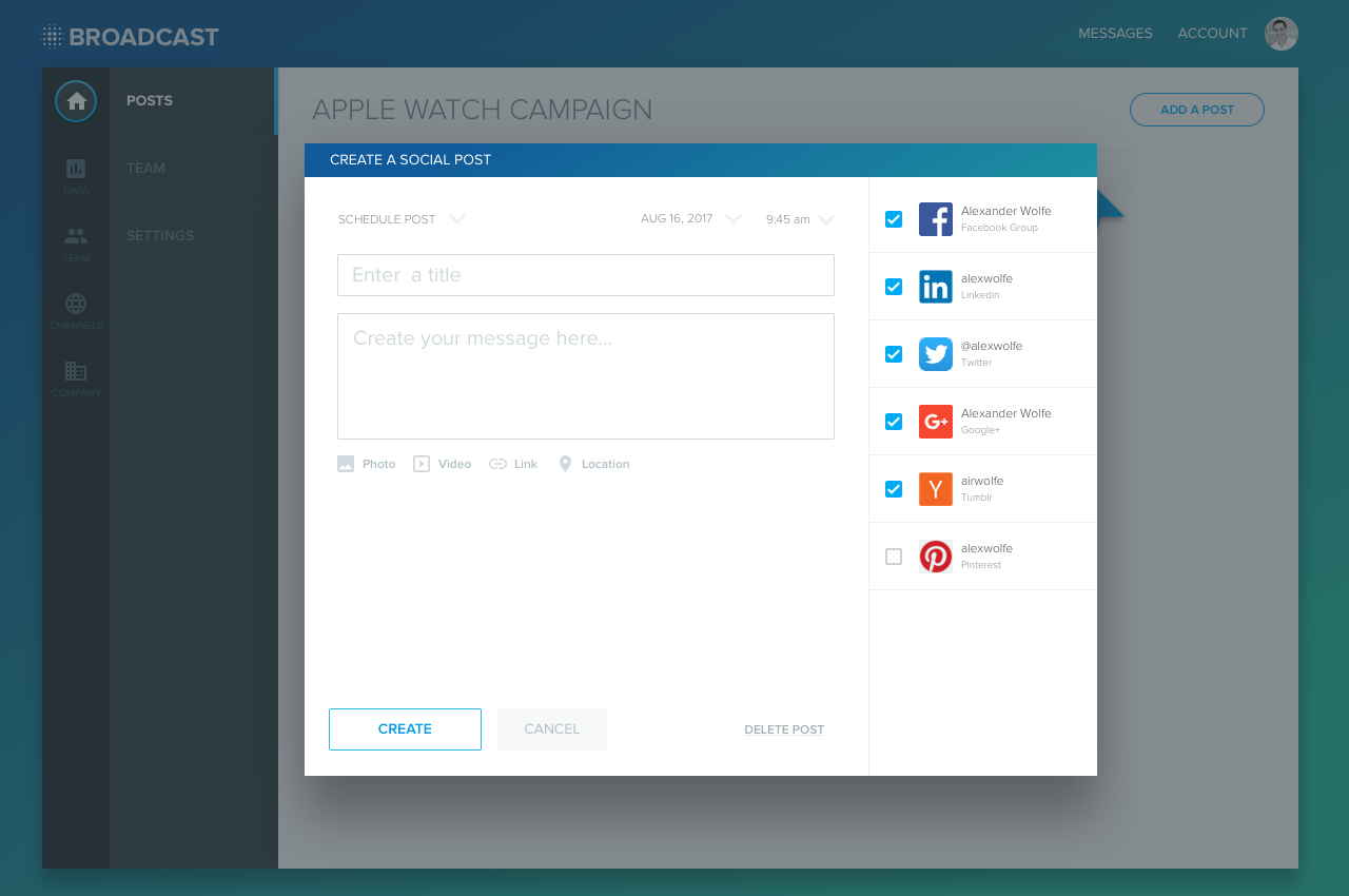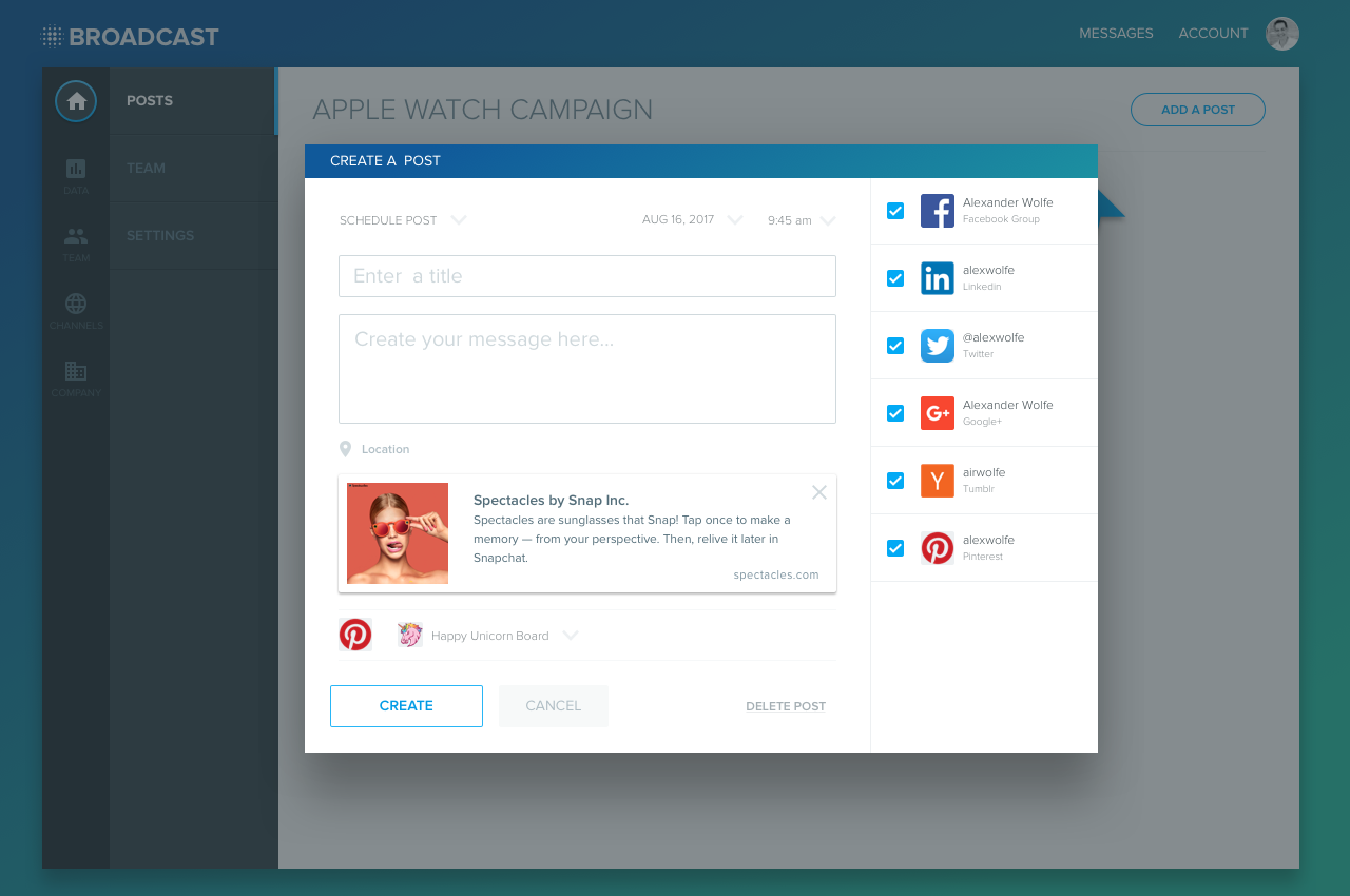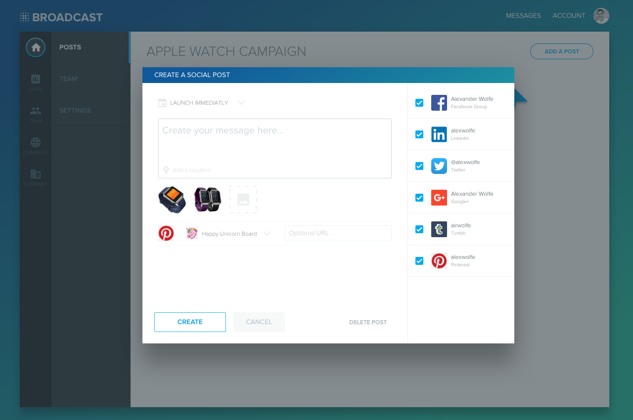 Broadcast made it easy to create a media rich post and instantly publish it across all of your social media channels.