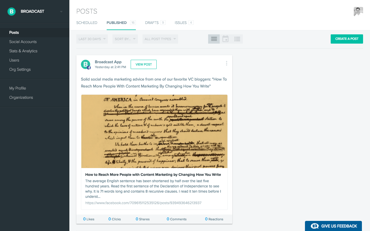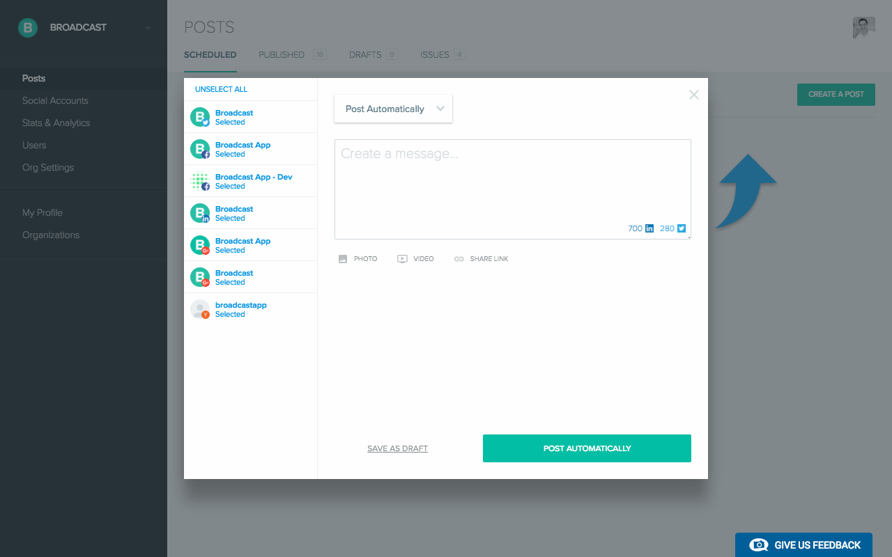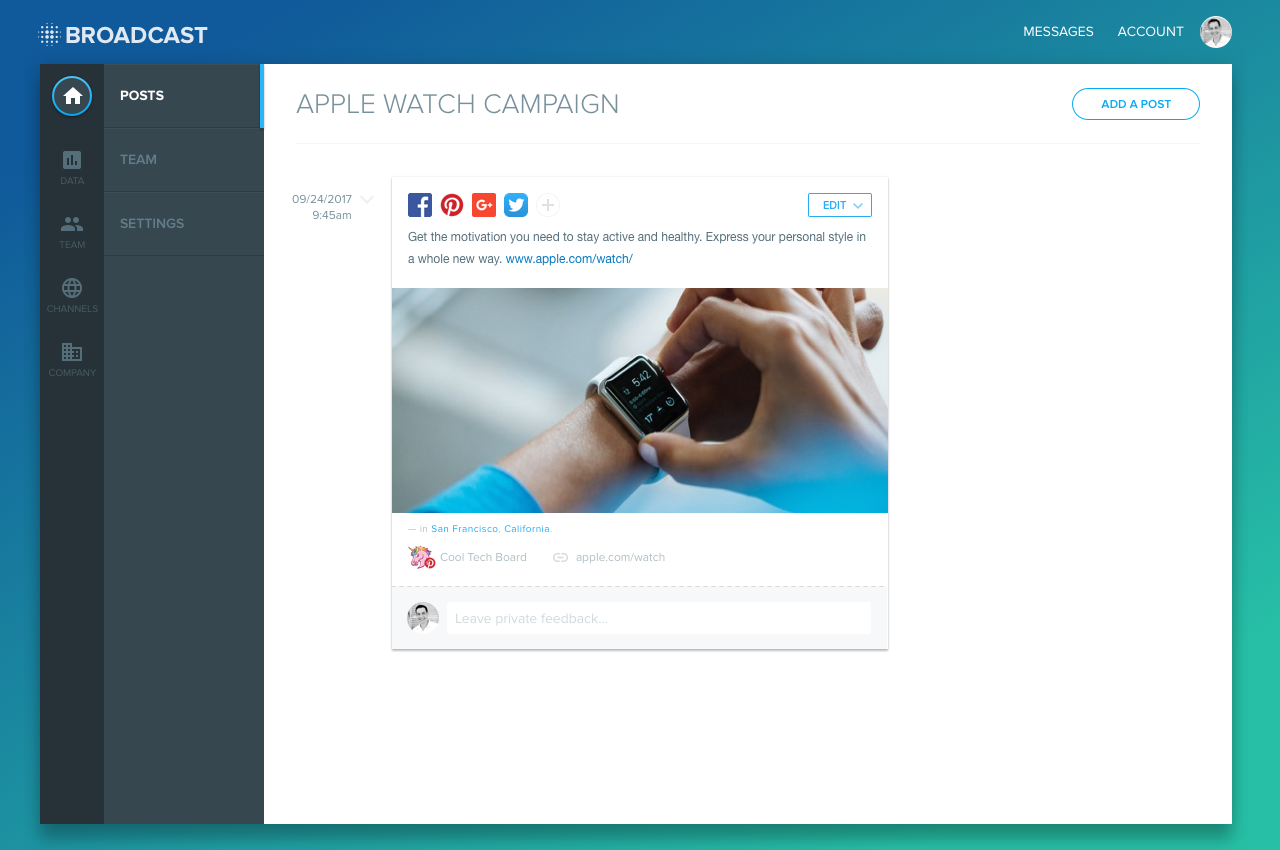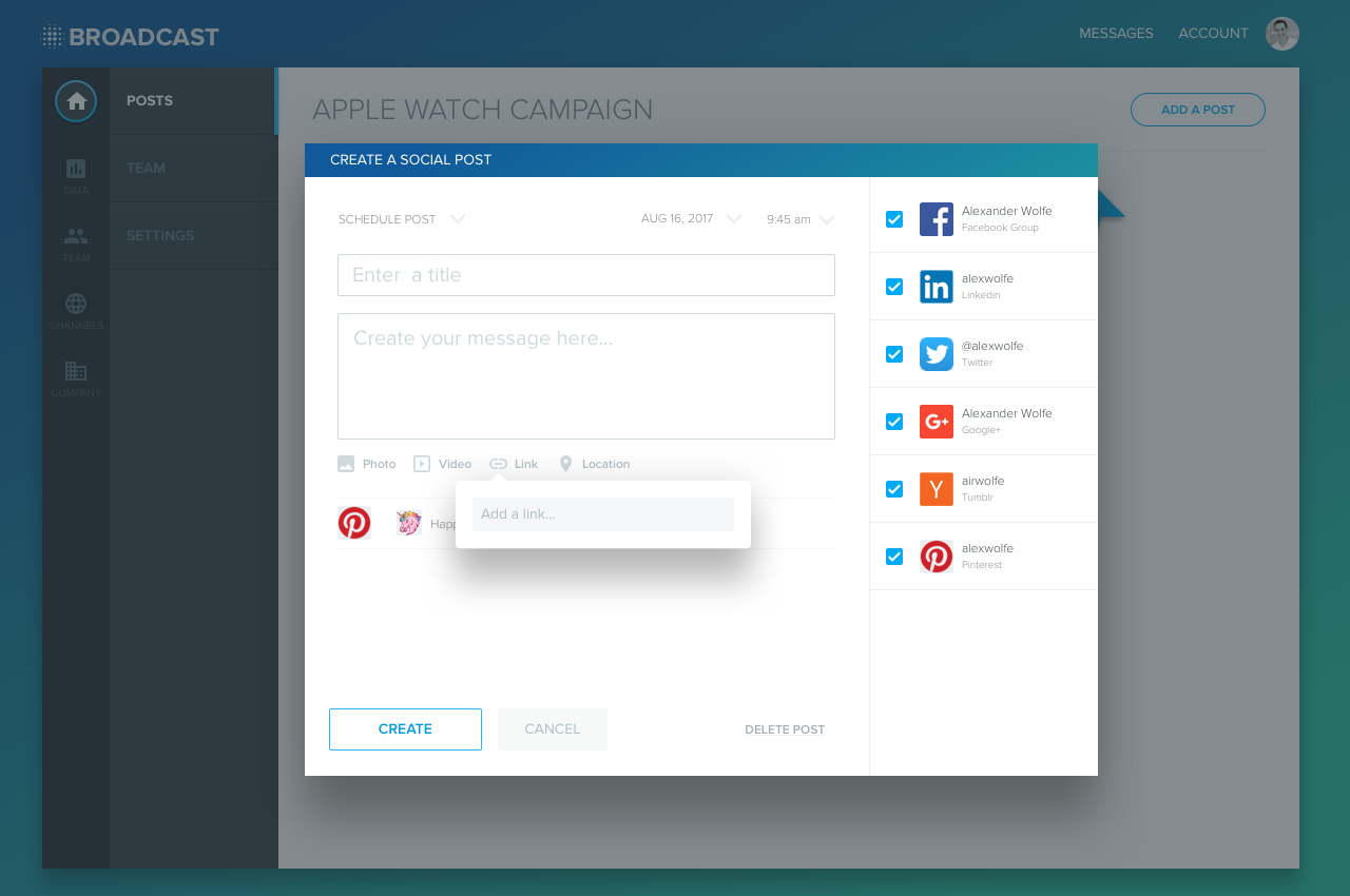 Broadcast made it easy to create a media rich post and instantly publish it across all of your social media channels.