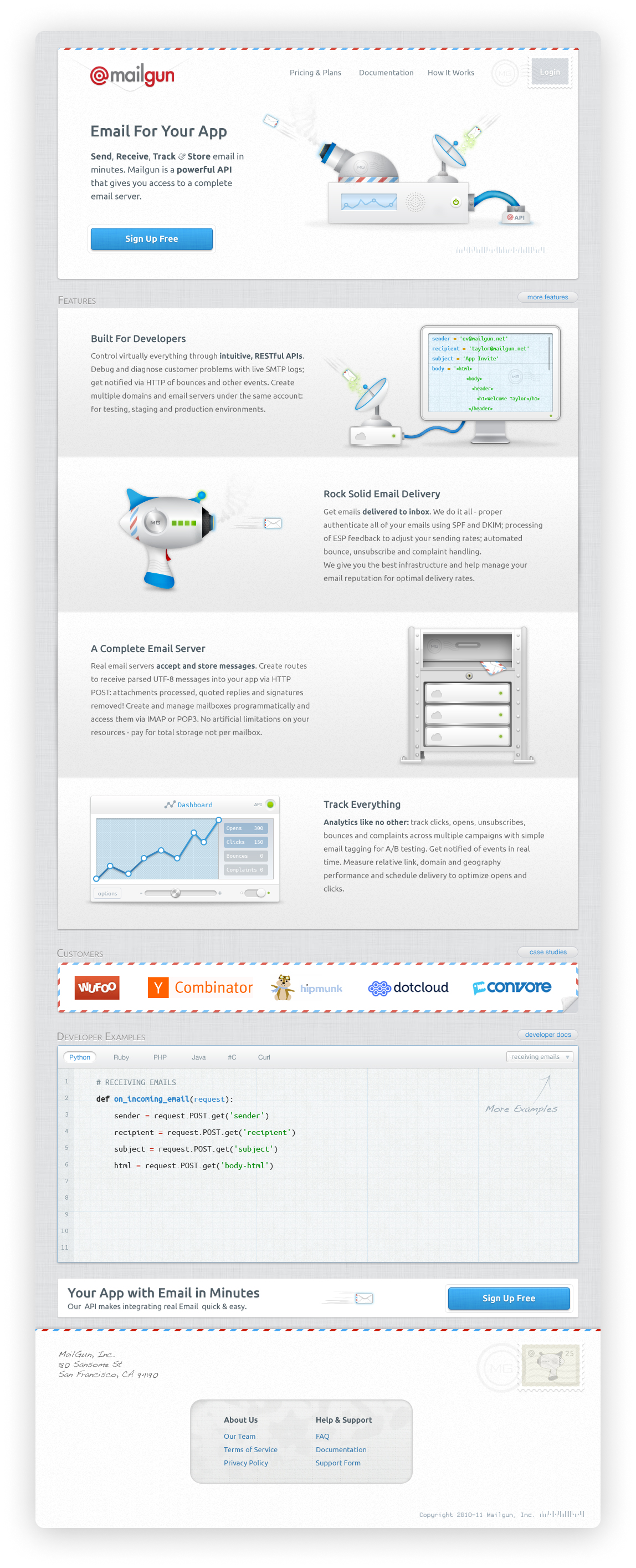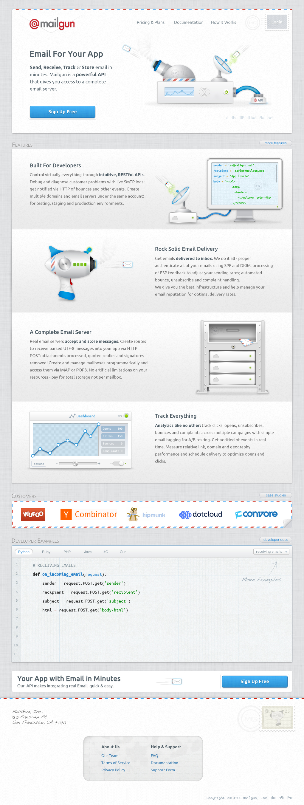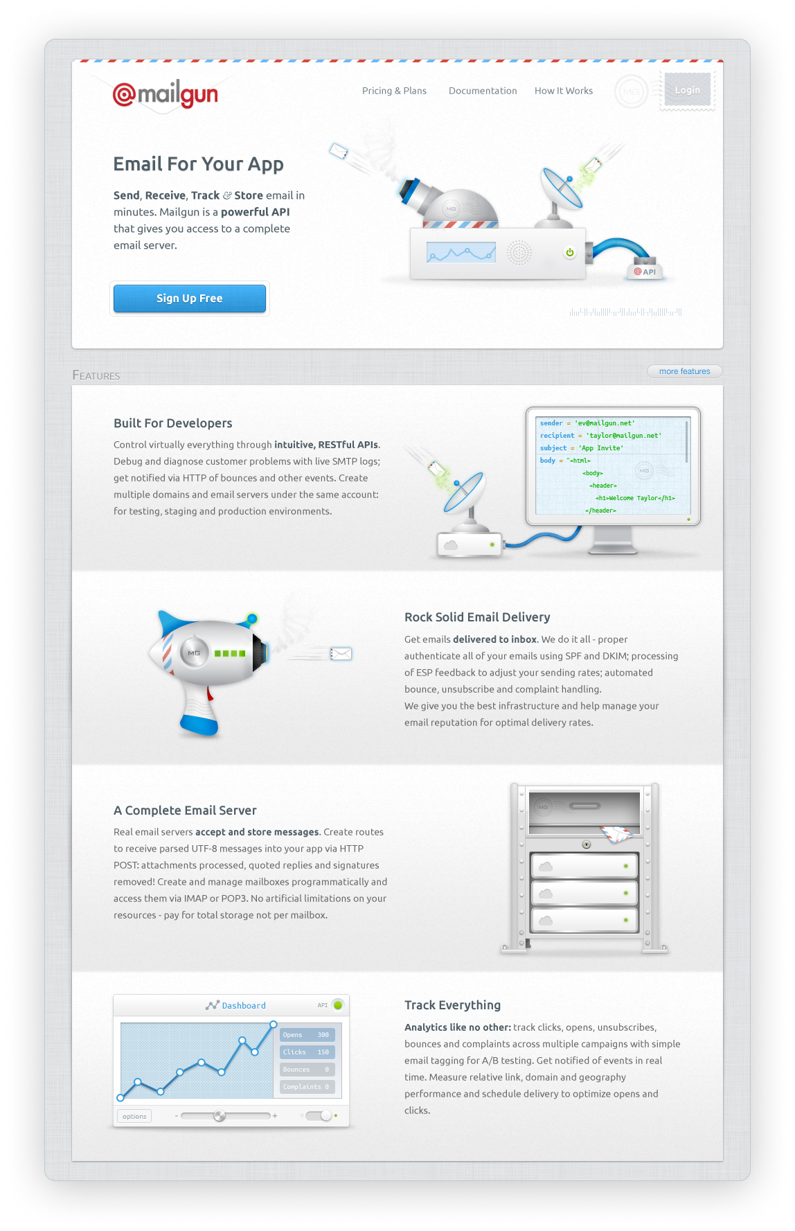 The new mailgun was light and inspiring with custom drawn illustrations to reinforce the messaging.