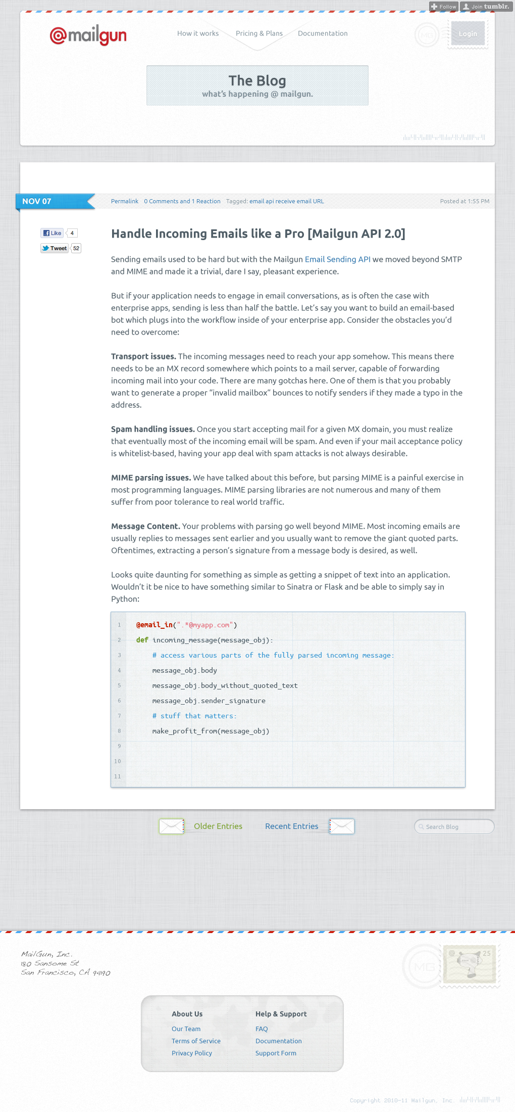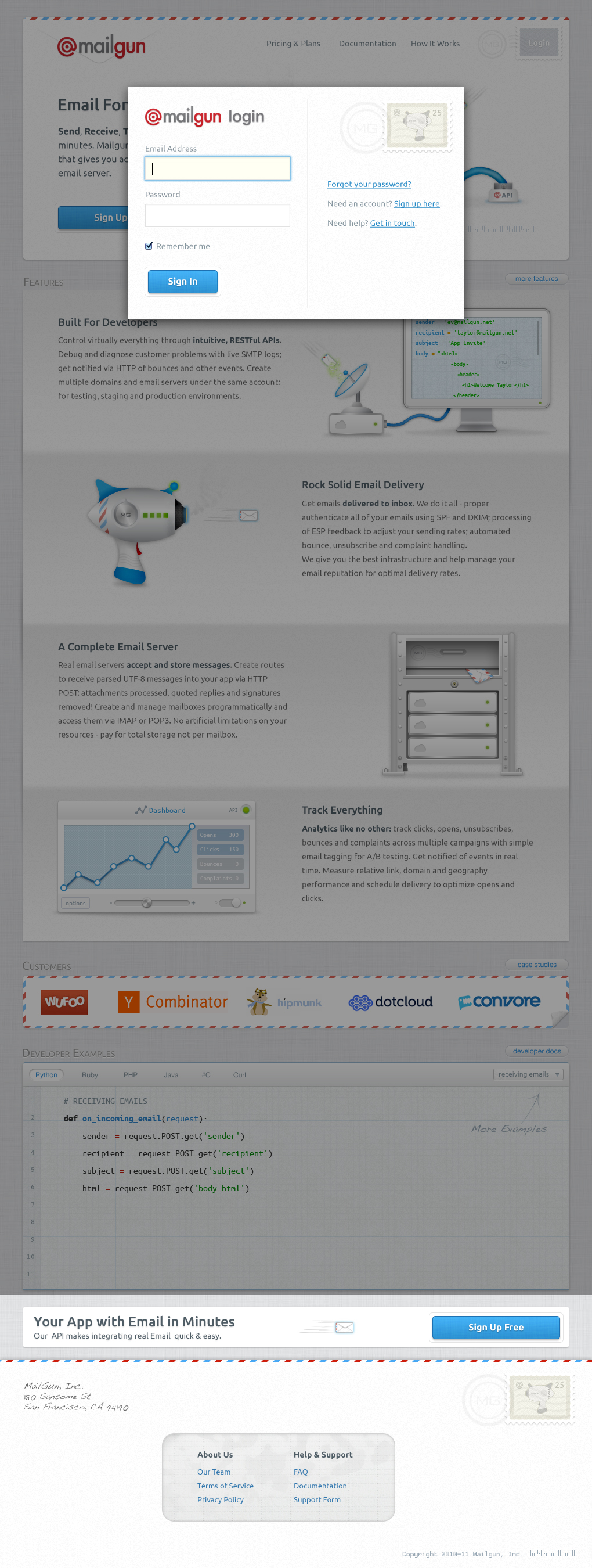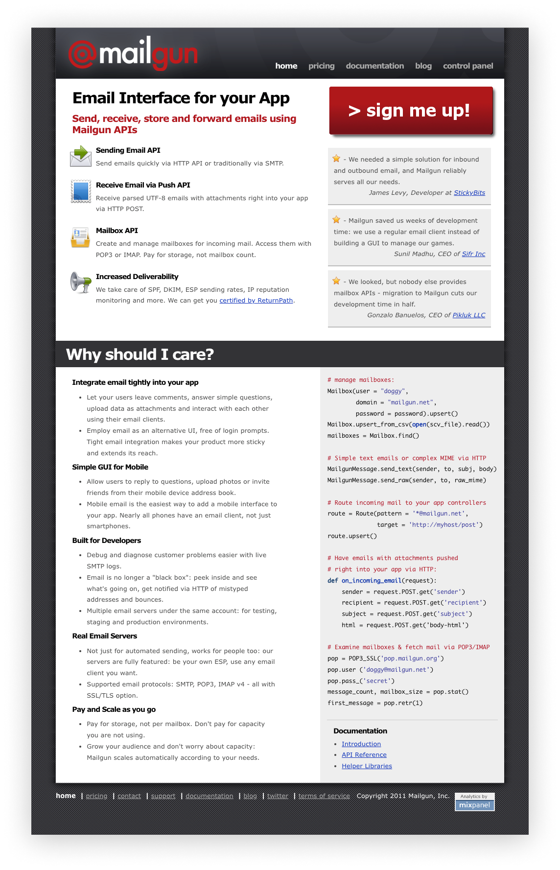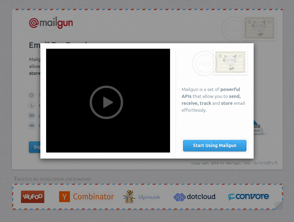 The Mailgun homepage reimagined the brand to be inviting, friendly, and engaging.