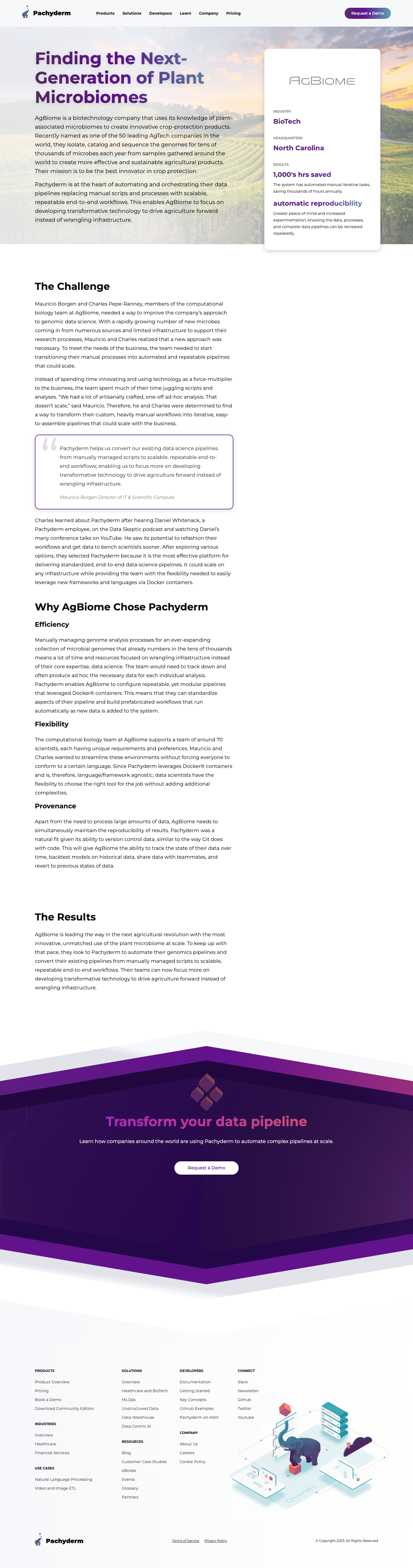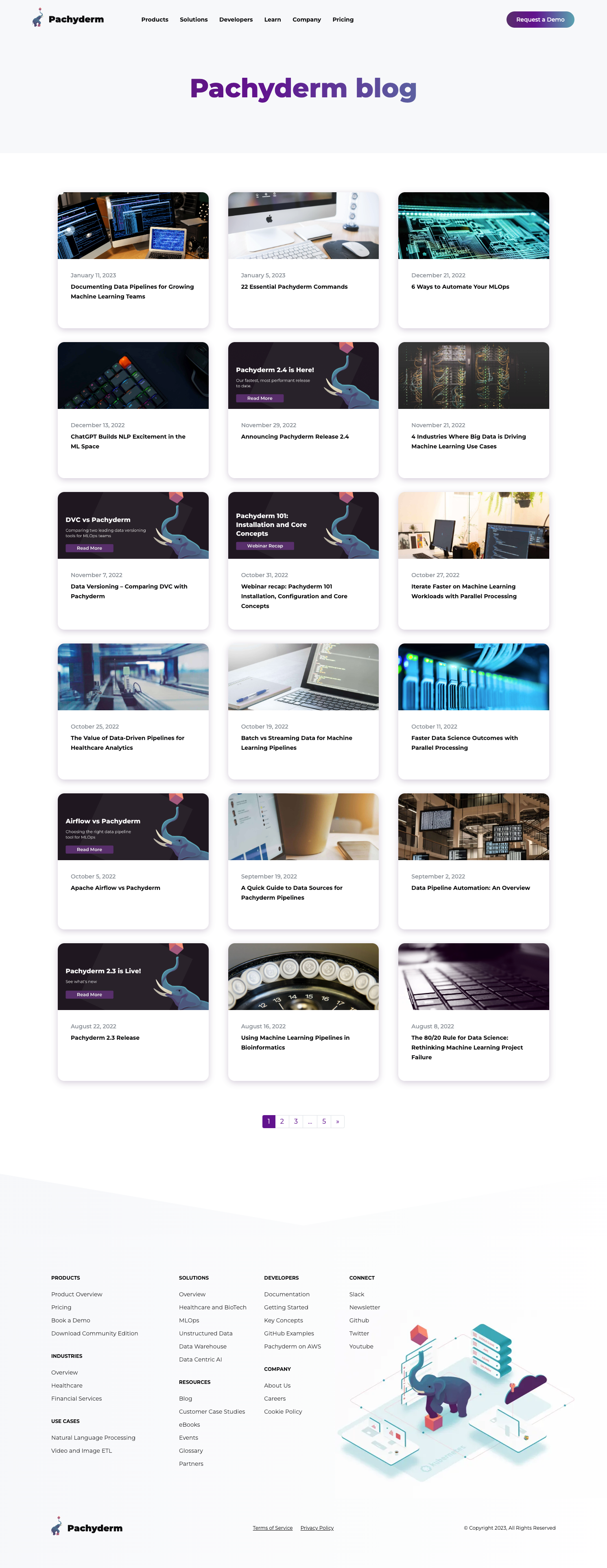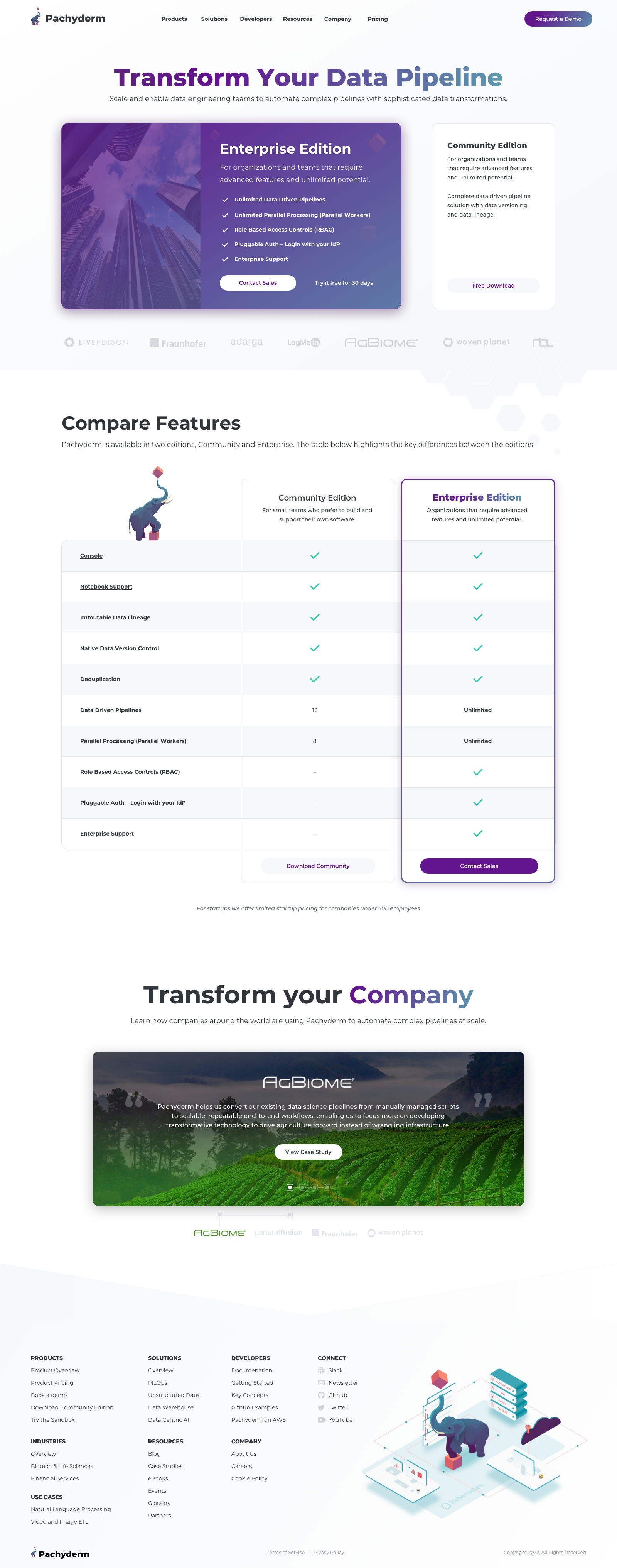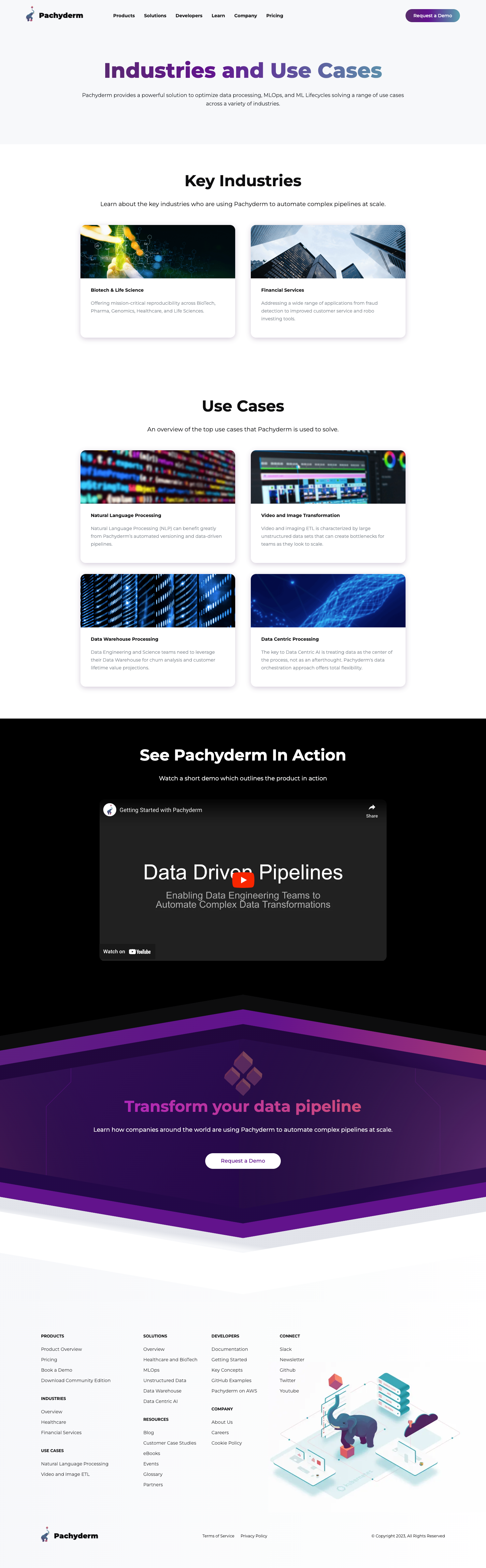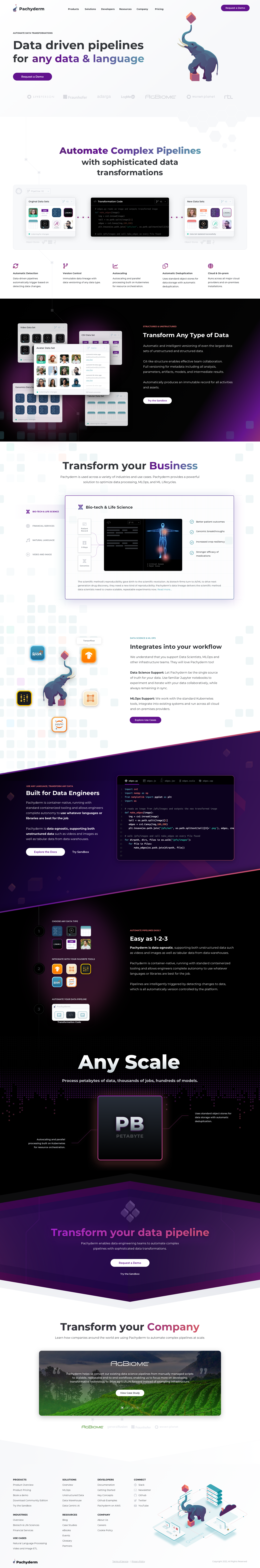 The new homepage for Pachyderm combined a number of unique design elements that resulted in a big bold, sophisticated, high tech brand.