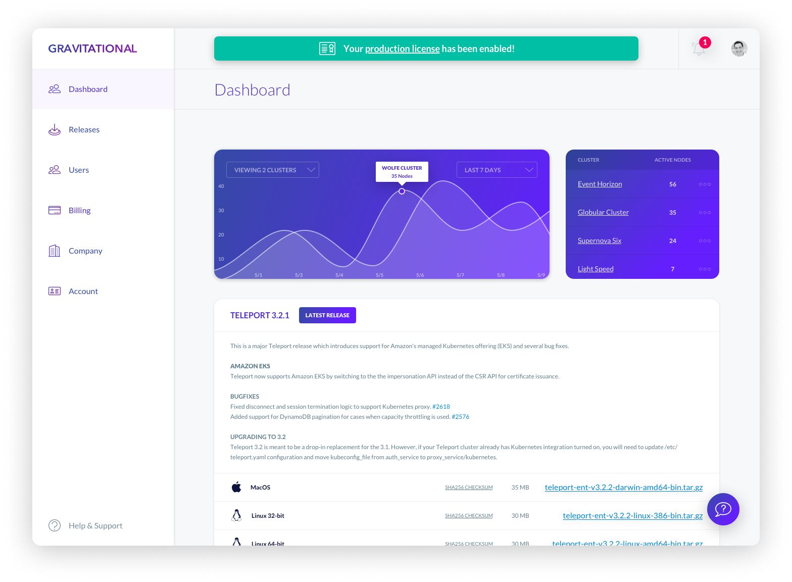Teleport’s administration panel, Houston, served as a critical platform for enterprise-level organizations to manage their payment information, billing invoices, and product licenses. However, the dashboard fell short in providing the essential features that account admins needed.